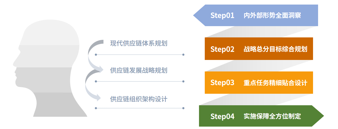 抓住行業(yè)動(dòng)態(tài)趨勢(shì)與客戶發(fā)展實(shí)際,提供供應(yīng)鏈體系、發(fā)展戰(zhàn)略、組織架構(gòu)重構(gòu)等戰(zhàn)略規(guī)劃服務(wù),找準(zhǔn)企業(yè)供應(yīng)鏈發(fā)展方向與重點(diǎn),支撐實(shí)現(xiàn)企業(yè)戰(zhàn)略目標(biāo)。